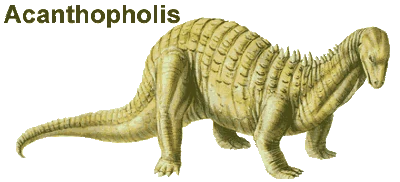 Acanthopholis: Este dinosaurio era extraño y muy poco conocido. Tenía un cuerpo recio y acorazado para defenderse de sus enemigos como el Tyrannosaurus , el enemigo de muchos tireóforos del Cretácico superior. Su cuello estaba cubierto por unas pequeñas púas y el resto del cuerpo estaba acorazado de forma semejante a la de los pangolines actuales, reforzado por algunas protuberancias. Era herbívoro y masticaba las plantas que estaban muy cerca del suelo. Sus cuatro patas eran muy fuertes y podía correr a grandes velocidades con ellas. Medía 4 metros de largo. Se han encontrado muy pocos fósiles, algunos en Folkestone y Cambridge, Inglaterra. Vivió hace 95 millones de años, en el Cretácico superior.