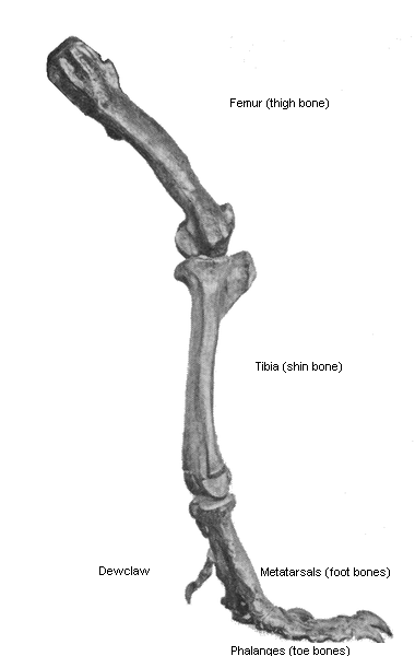 Skeletal anatomy of a T. rex right leg.