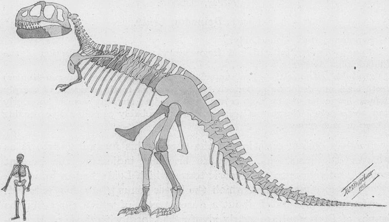 Skeletal restoration by William D. Matthew from 1905, which was the first reconstruction of Tyrannosaurus rex ever published[72]
